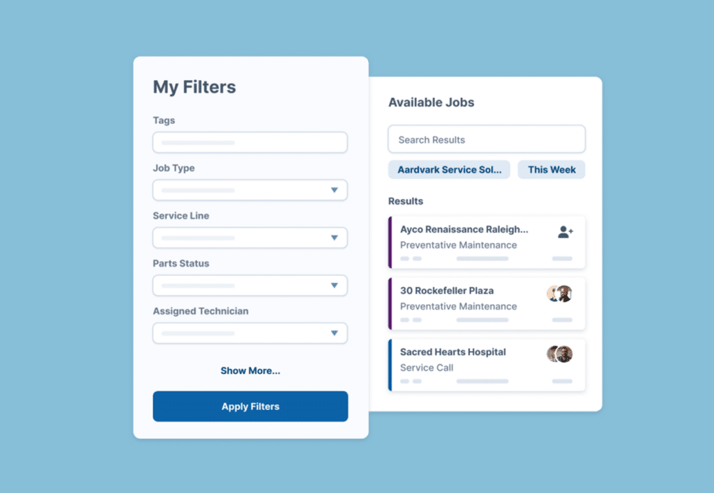 Schedulers see the big picture of all the work that is due before scheduling technicians. Schedulers apply filters to make the most important work stand out so they make the best service scheduling decisions.