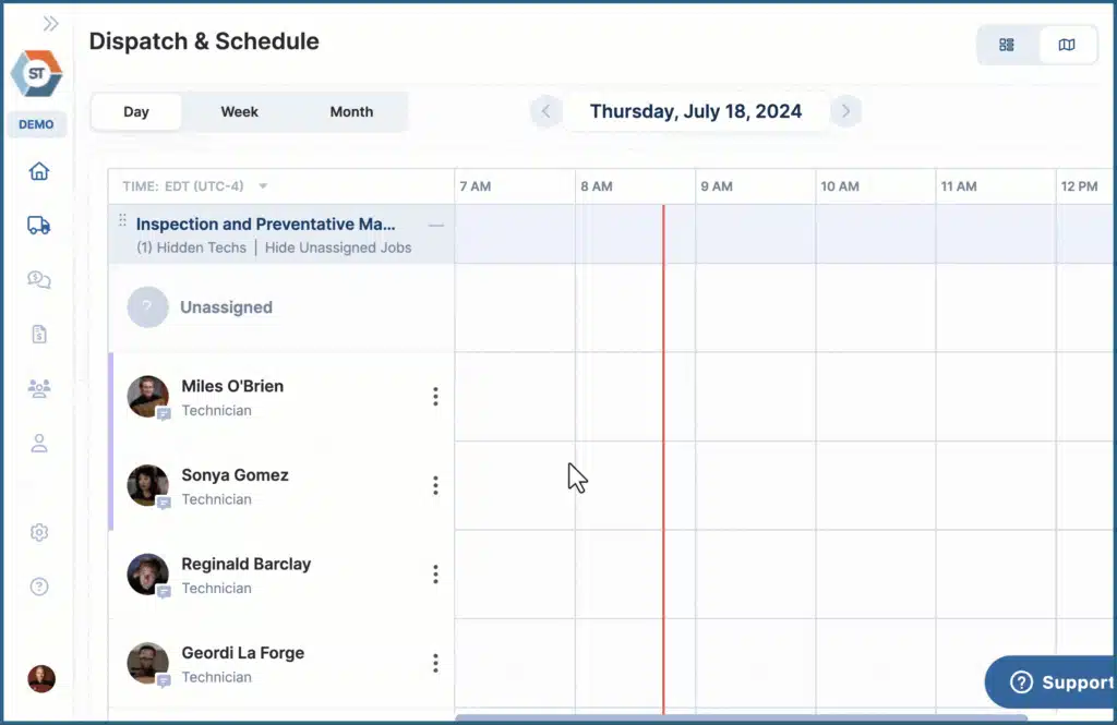 Happier Techs. By enhancing technician time management, ServiceTrade’s dispatch board helps contractors maximize their workforce efficiency. Technicians spend more time on jobs that match their skills, reducing the likelihood of errors and rework. This not only leads to faster job completion but also improves job satisfaction among technicians, who are more likely to feel valued and well-utilized.